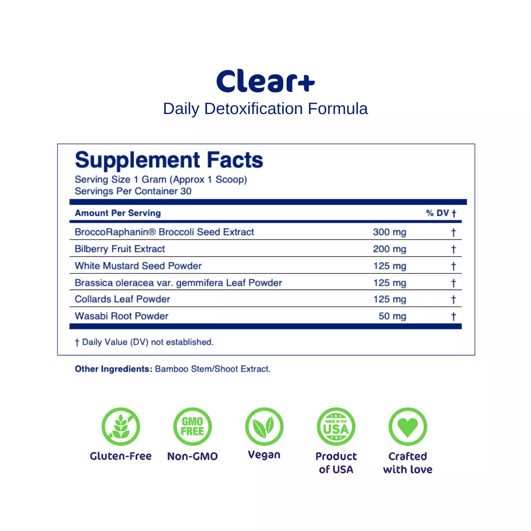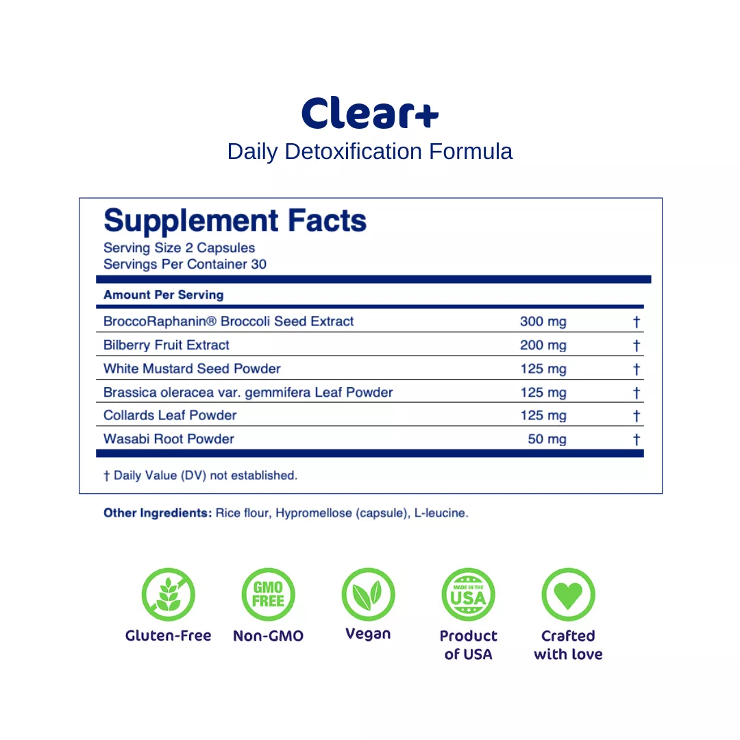 Clear+ is free of gluten, wheat, soy, and GMO ingredients, making it suitable for vegans.